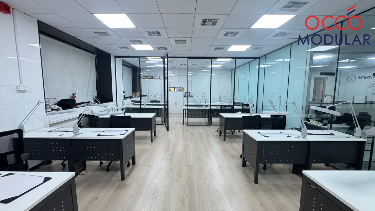We created a smart layout that maximized available space while ensuring smooth circulation. The open workstation area was designed to encourage teamwork, while cabins and meeting rooms ensured privacy. We installed ergonomic furniture and modular workstations to improve posture, productivity, and flexibility. he executive cabins were designed with: Premium finishes Statement lighting Acoustic treatment for privacy Minimalist yet sophisticated furniture . Brand colors, textures, and design elements were incorporated subtly across the office interior to maintain professional consistency.